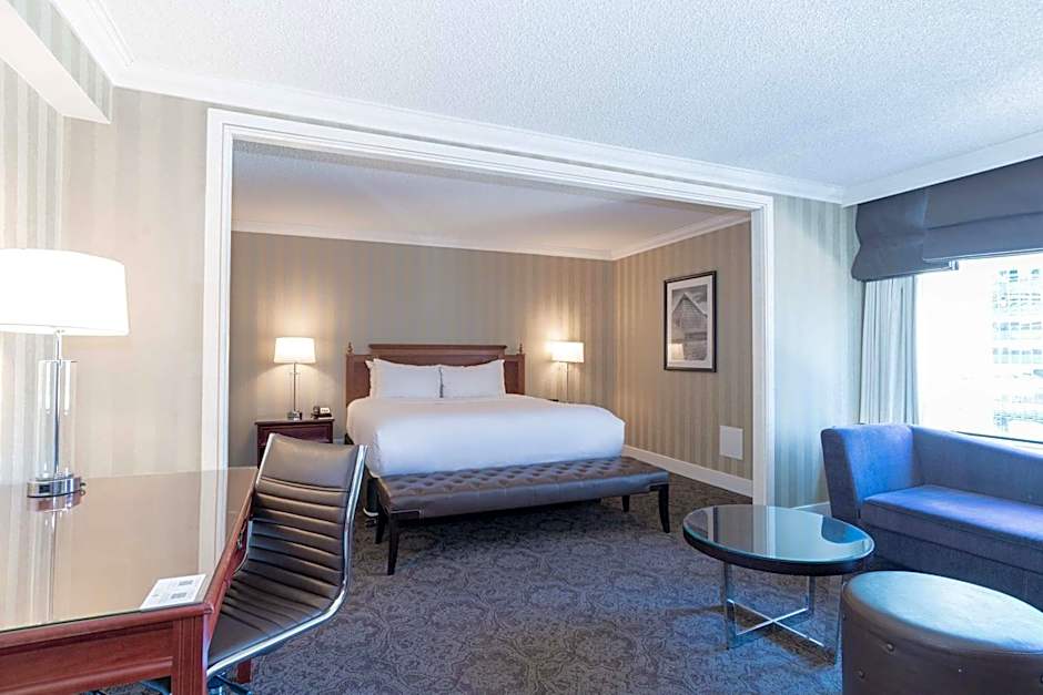 This spacious suite offers a 37” or 42” LCD flat-screen TV with in-room movies. Upgraded amenities include a safety deposit box, bathrobes and slippers, and 2 free bottles of water.